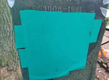 На второй фотографии изображён наклеенный на памятник трафарет, который необходимо было обработать пескоструйкой.