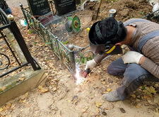 На данном месте захоронения нам предстояло нанести на надгробье дополнительные надписи, а также отремонтировать сломанное во время последних похорон ограждение. Когда мы приехали на участок, то помимо памятников с именами покойных там стояли таблички, содержащие информацию ещё о двух усопших.