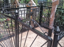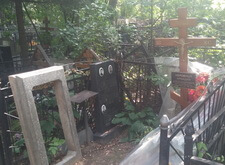 Могила стандартная, не большая. Когда-то здесь стоял гранитный памятник и была высокая ограда. После очередного захоронения плиту убрали в сторону, цветник тоже подняли, переднюю часть ограду демонтировали, установили временный крест.